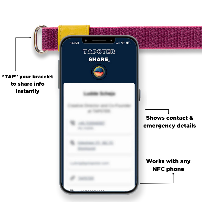 With the Tapster app, you can choose which information to share, only the details you want to make visible, such as emergency contacts and other essential information. For any updates, simply access the Tapster app to modify your data remotely, giving you full control over what you share.