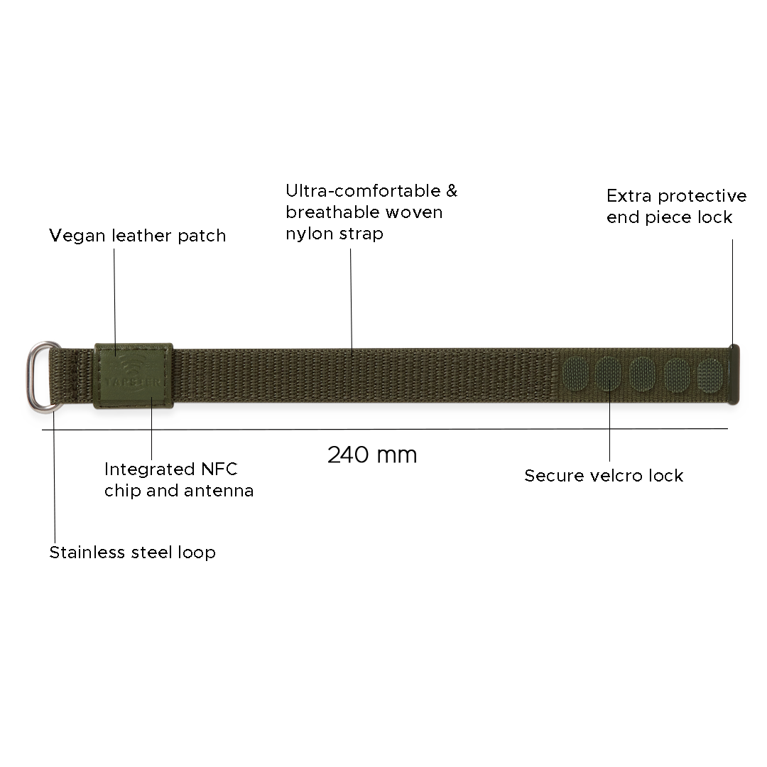 The Tapster payment bracelet combines style and durability, ideal for those on the go. Made from durable, lightweight nylon with stainless steel details, it’s built for everyday adventures.