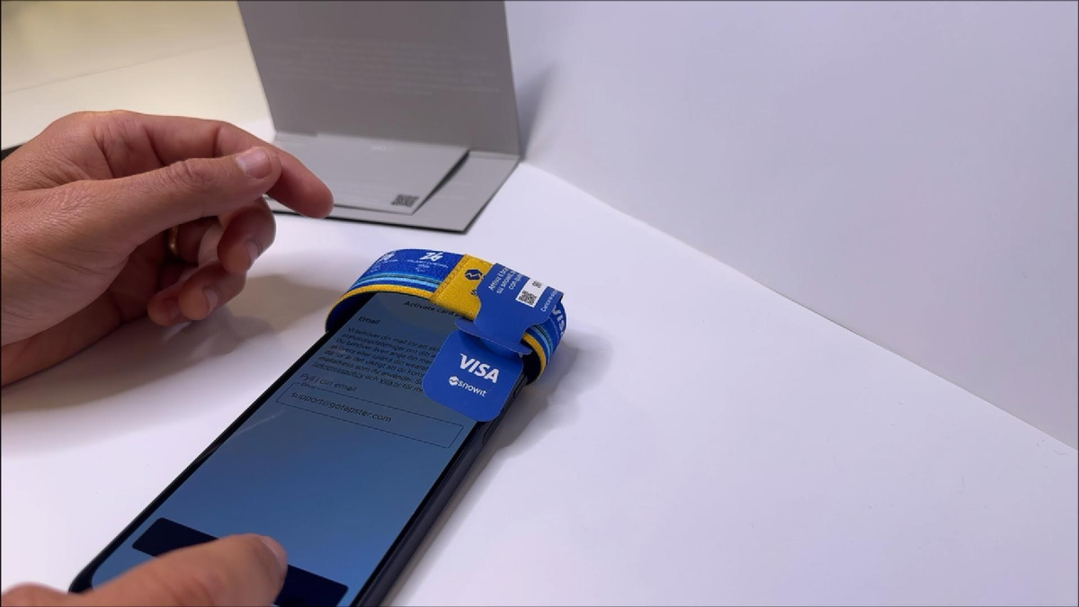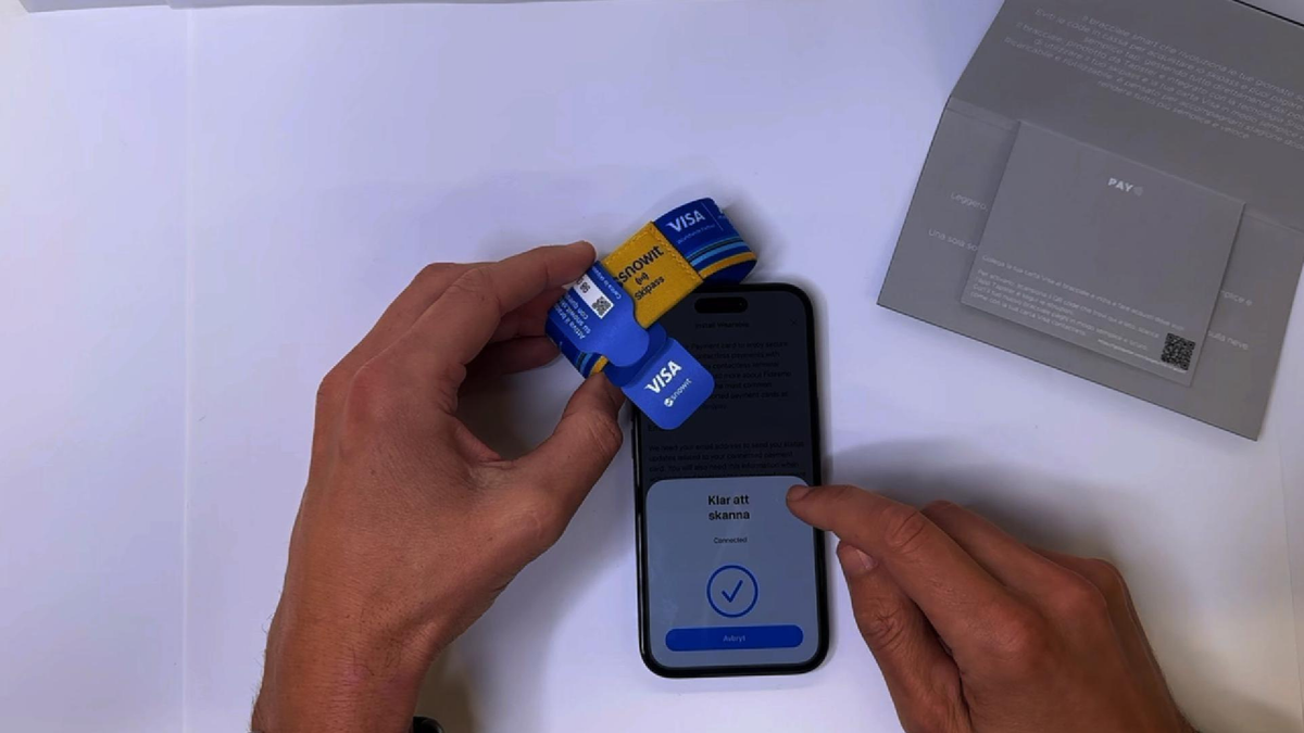 Appoggia il braccialetto su una superficie stabile con il logo Visa rivolto verso l’alto. Avvicina il lettore NFC del tuo smartphone al logo Visa e tocca “Aggiungi wearable”.